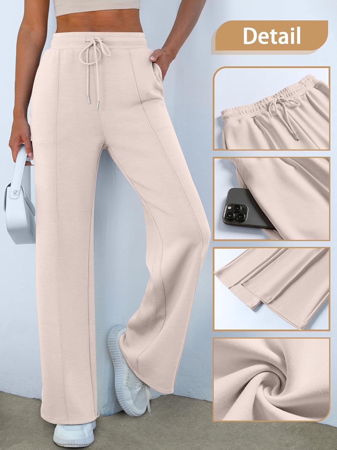 ANRABESS Women’s Wide Leg Sweatpants High Waist Baggy Flared Pants Drawstring Athletic Joggers Sweat Pants(Light Apricot)