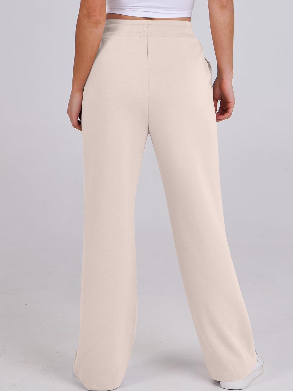 imageANRABESS Womens Wide Leg Sweatpants High Waist Baggy Flared Pants Drawstring Athletic Joggers Sweat PantsLight Apricot