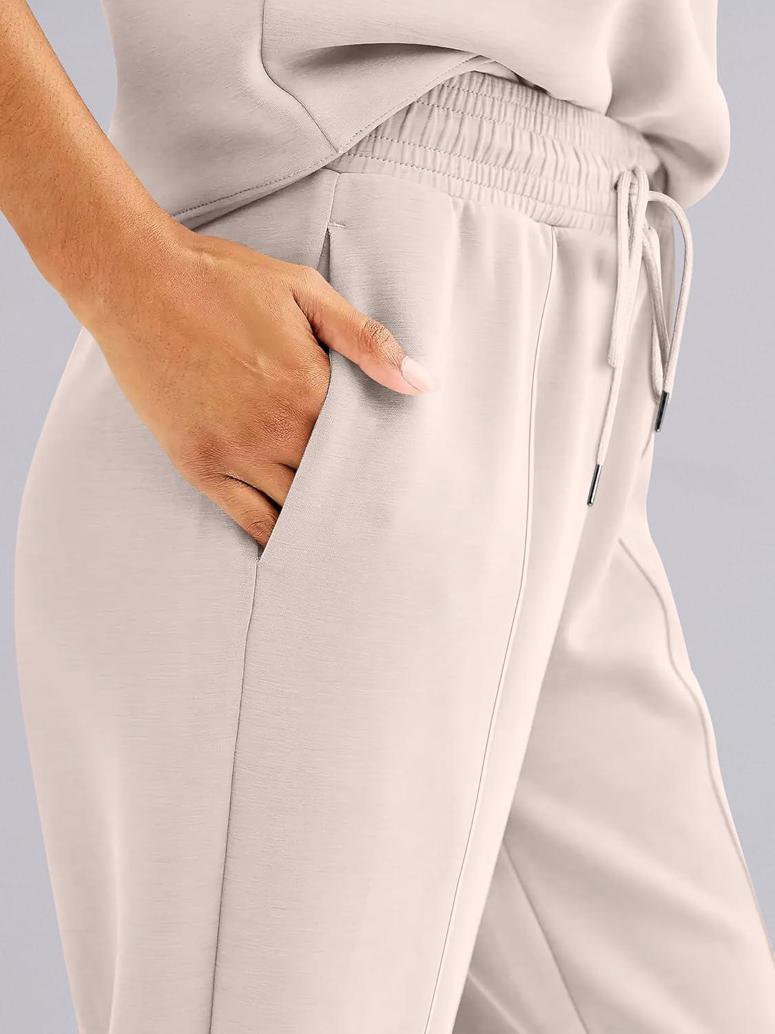 ANRABESS Women's Wide Leg Sweatpants High Waist Baggy Flared Pants Drawstring Athletic Joggers Sweat Pants(Light Apricot)