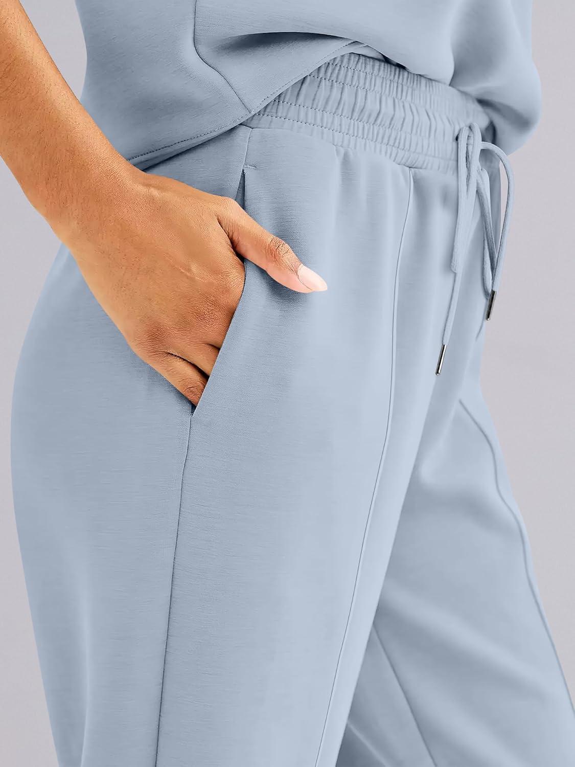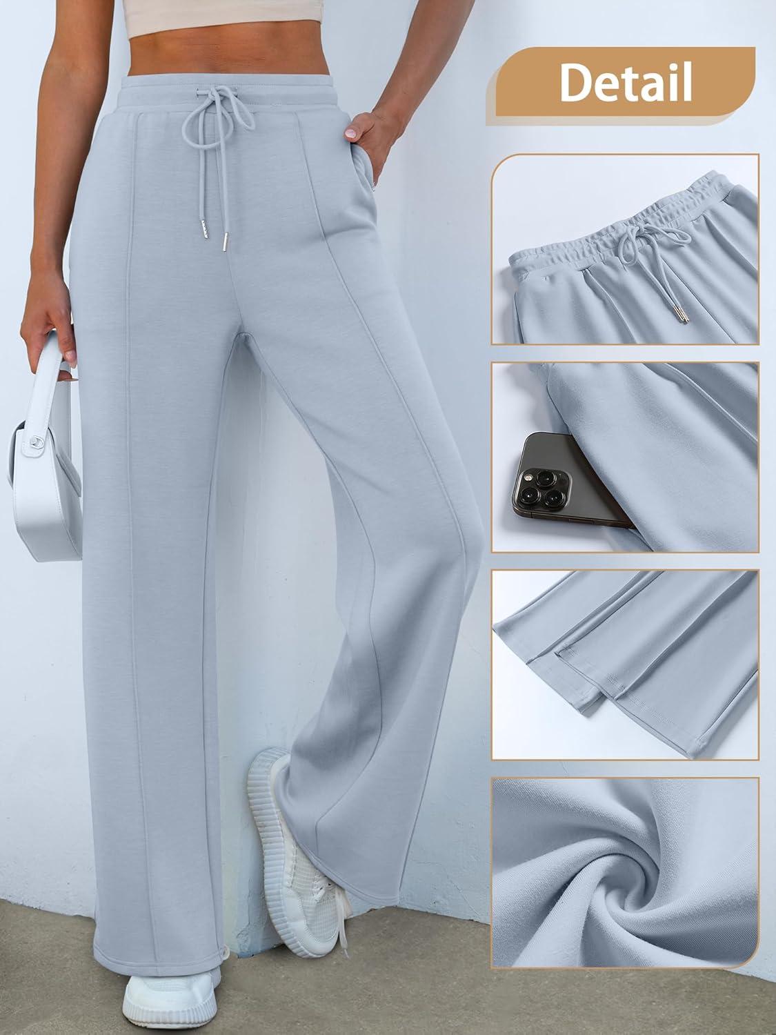 ANRABESS Women's Wide Leg Sweatpants High Waist Baggy Flared Pants Drawstring Athletic Joggers Sweat Pants(Light Blue)