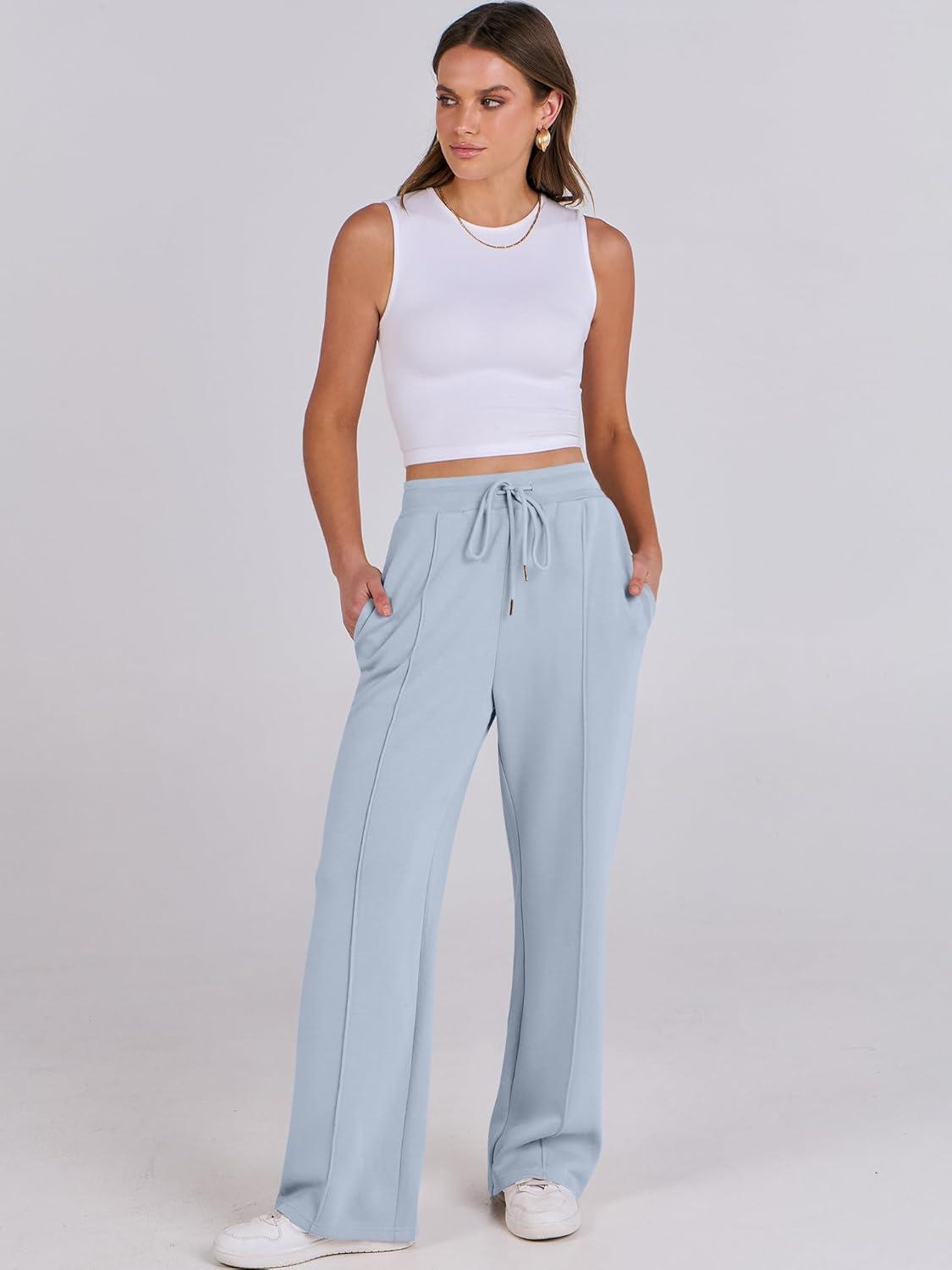 ANRABESS Women’s Wide Leg Sweatpants High Waist Baggy Flared Pants Drawstring Athletic Joggers Sweat Pants(Light Blue)