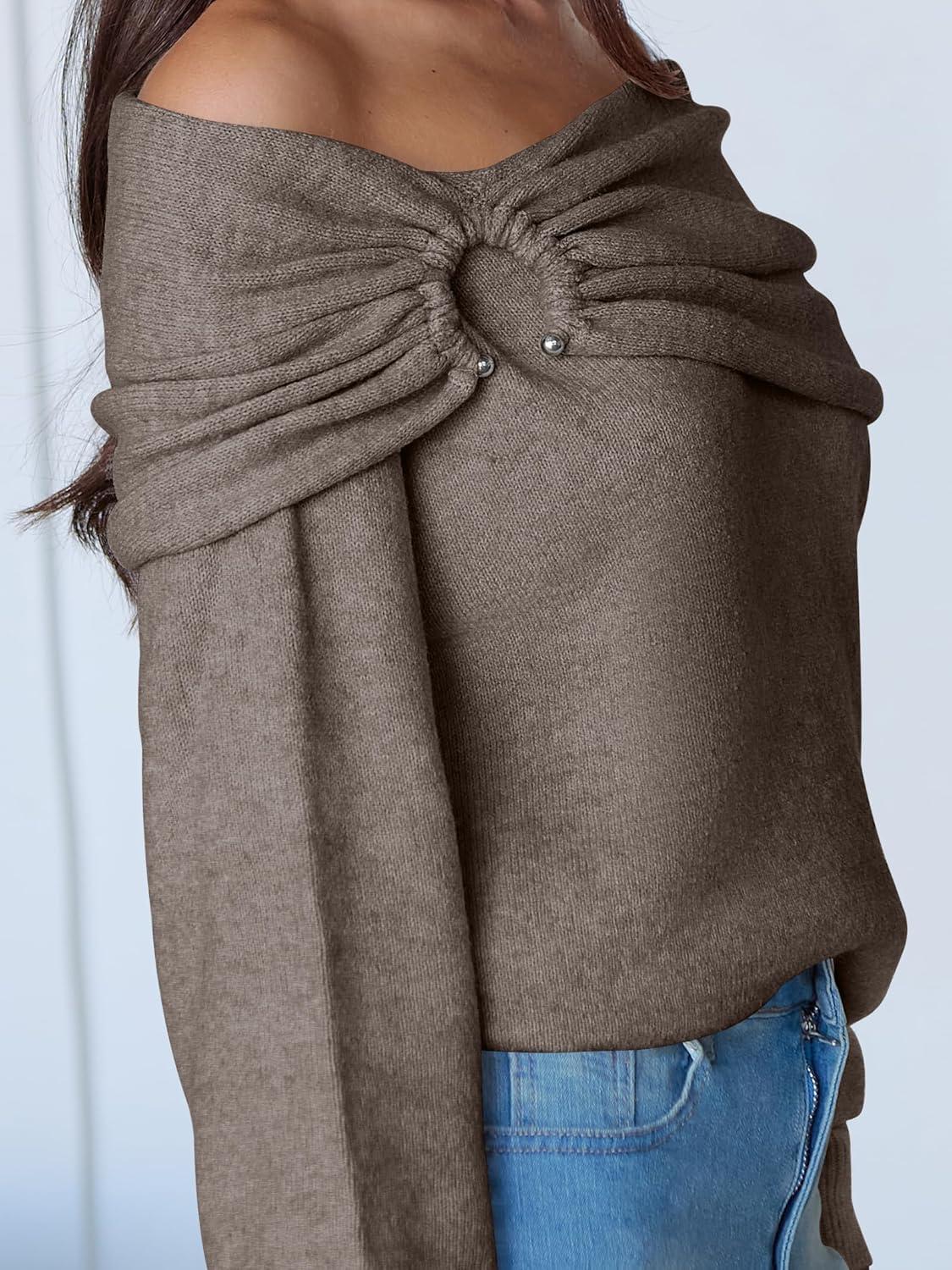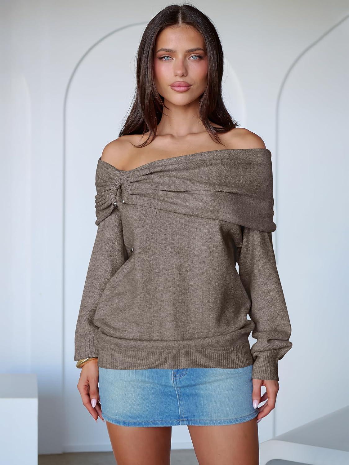 ANRABESS Womens Wool Blend Off The Shoulder Long Sleeve Soft Knit Sweaters 2025 Fall Outfits(Camel)