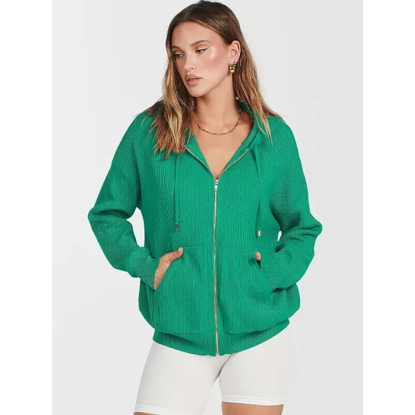 ANRABESS Women's Zip Up Hoodies Sweater 2023 Fall Oversized Casual hooded Jacket Long Sleeve Ribbed Knit Sweatshirts(Green)