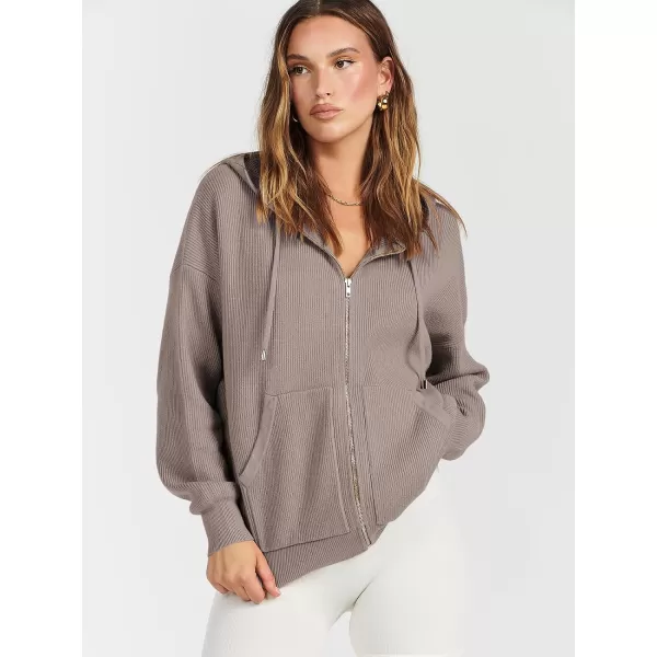 imageANRABESS Womens Zip Up Hoodies Sweater 2023 Fall Oversized Casual hooded Jacket Long Sleeve Ribbed Knit SweatshirtsLight Brown