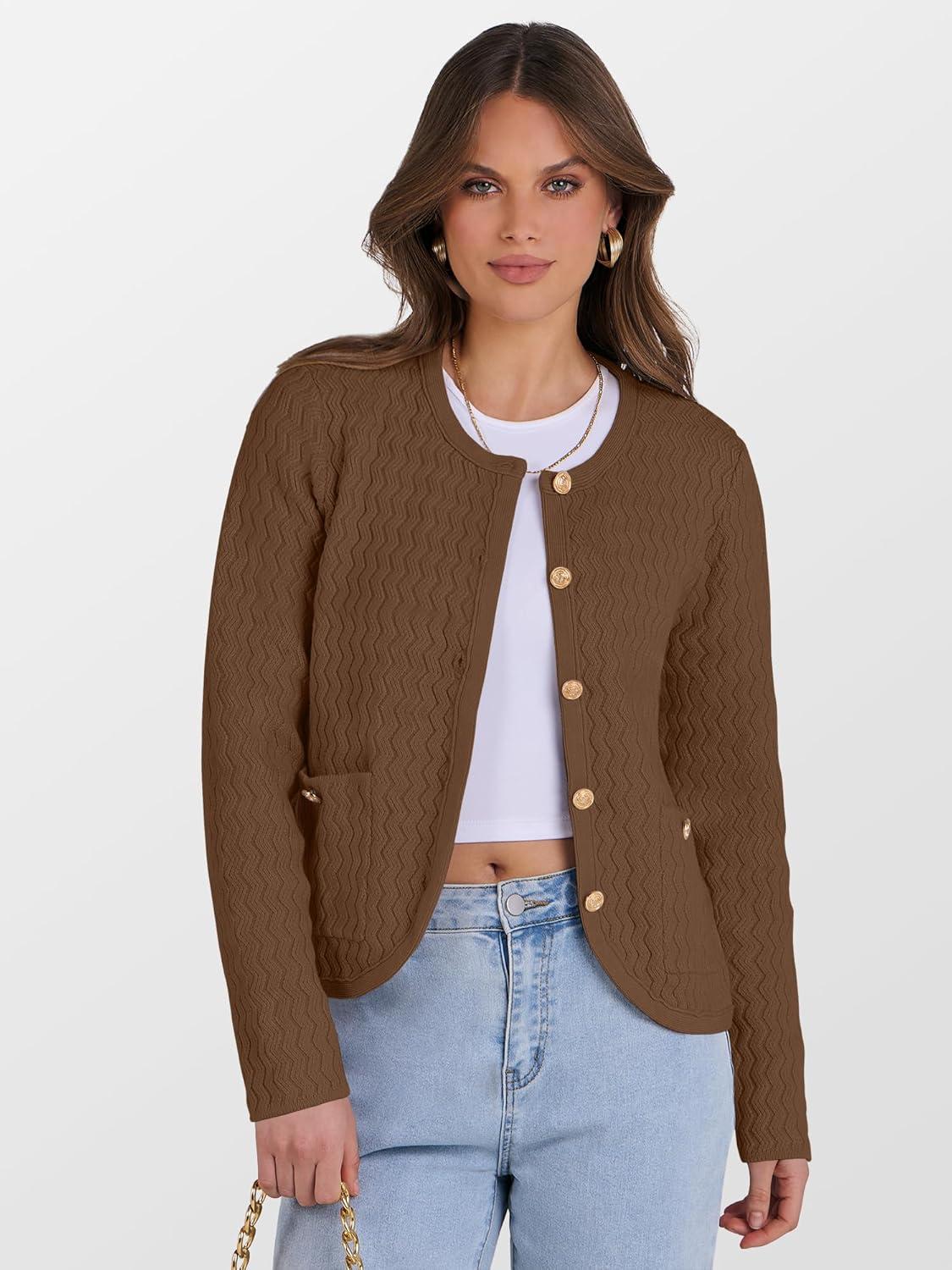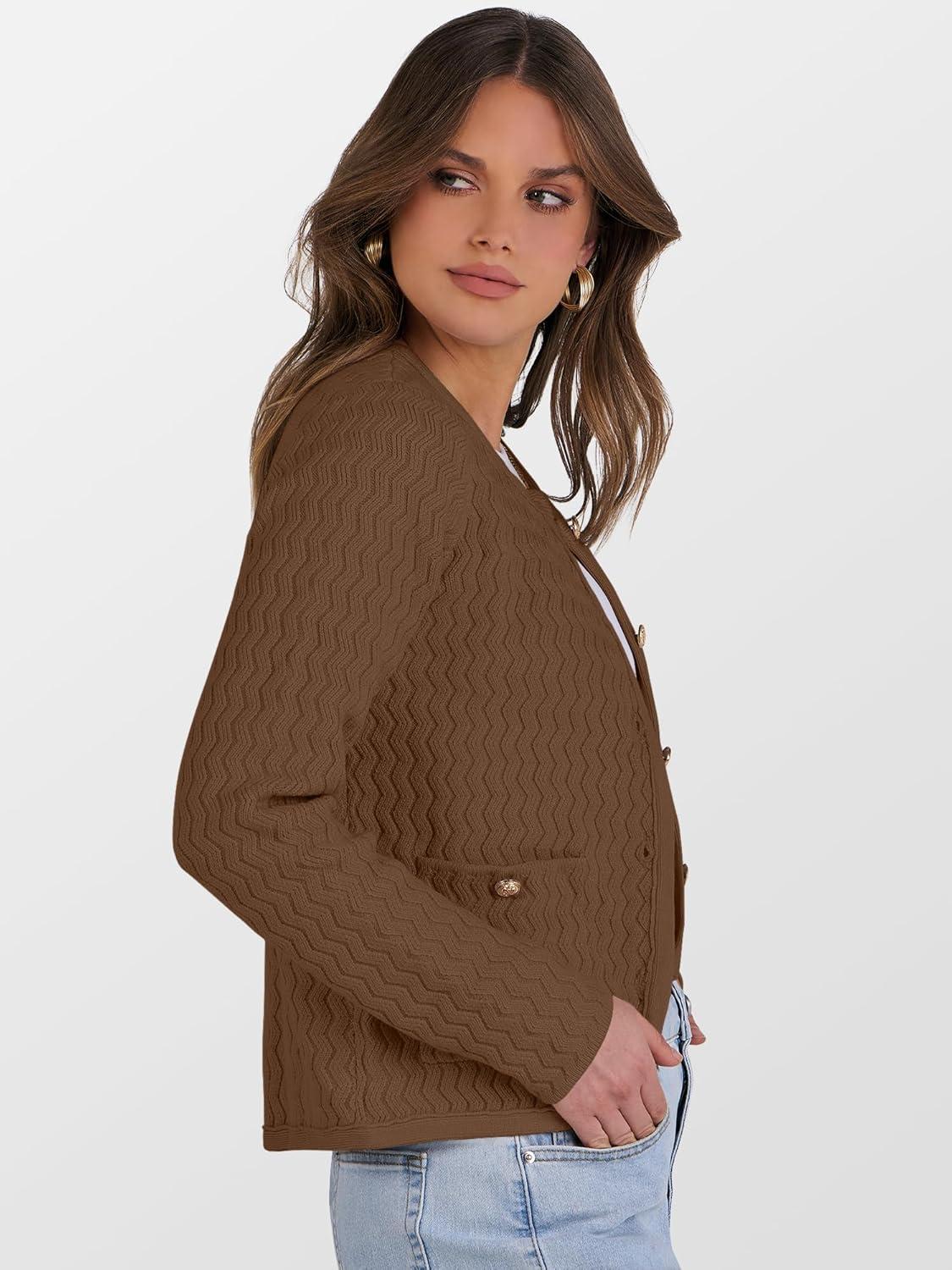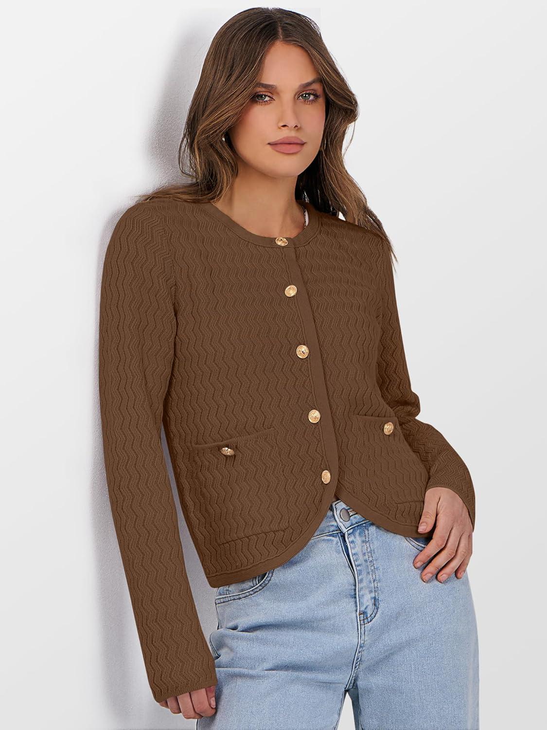Caracilia Women's 2025 Fall Cardigan Sweaters Knitted Dressy Casual Jackets Trendy Outfits(Brown)