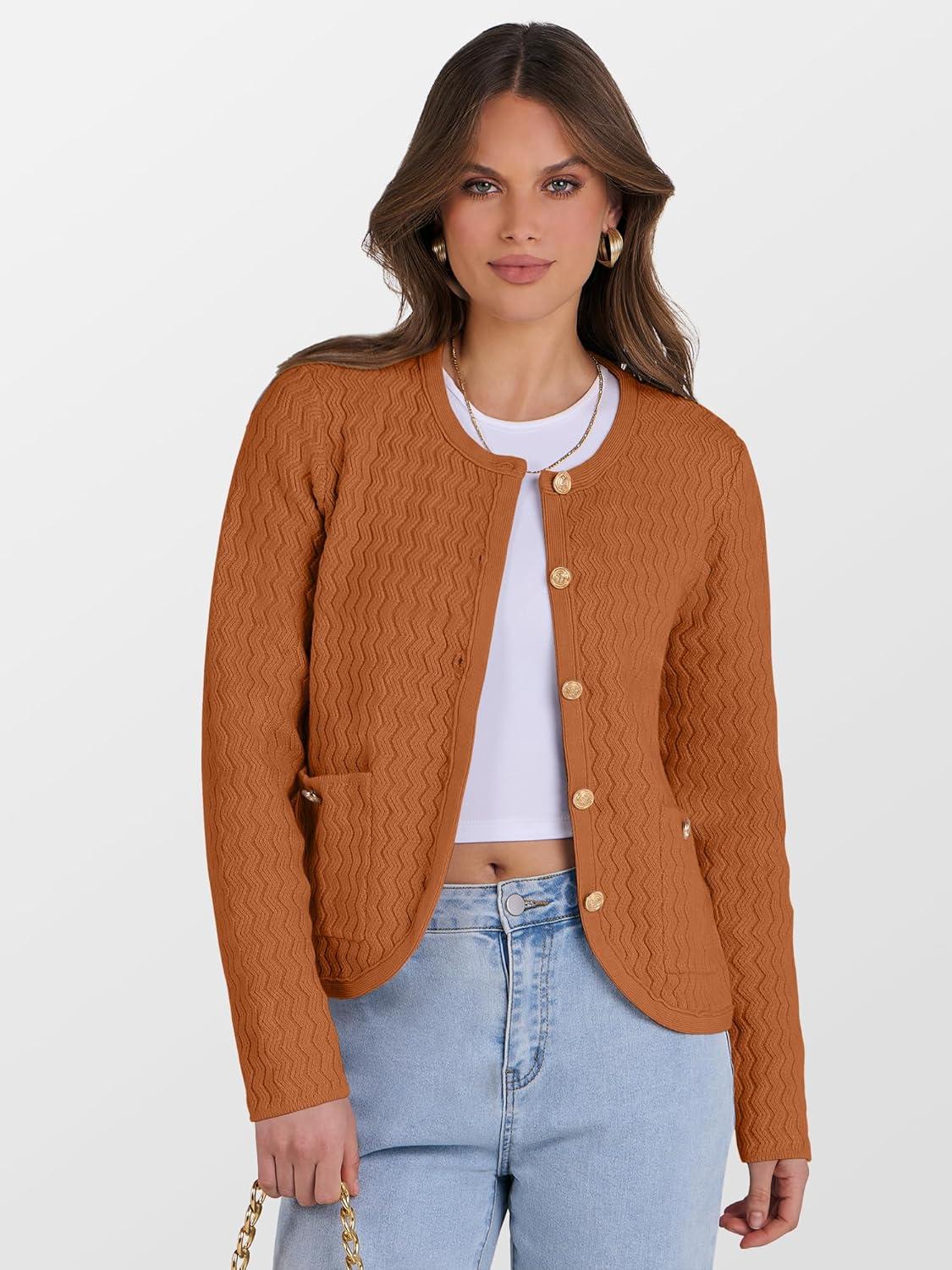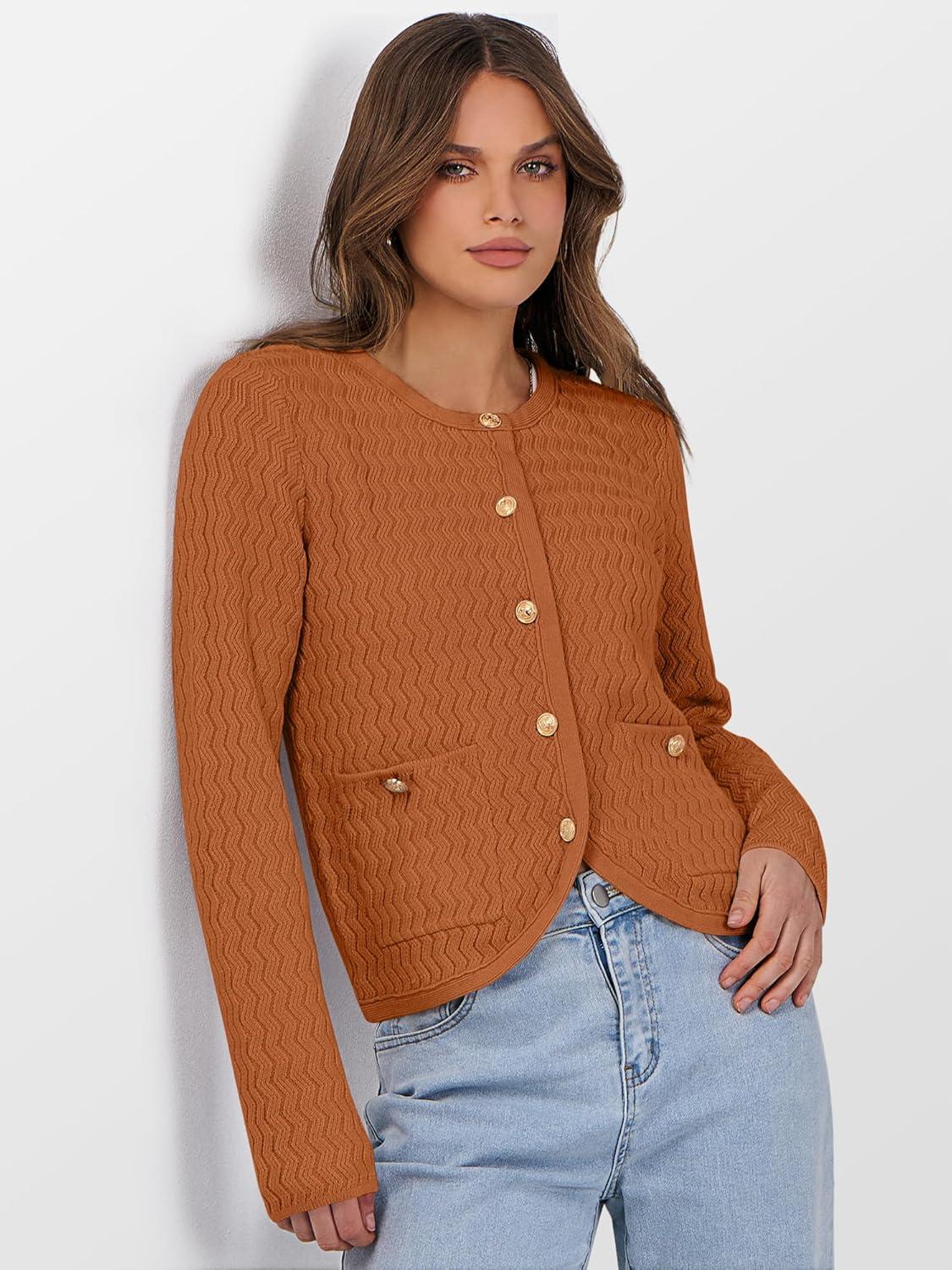 Caracilia Women’s 2025 Fall Cardigan Sweaters Knitted Dressy Casual Jackets Trendy Outfits(Camel Peach Brown)