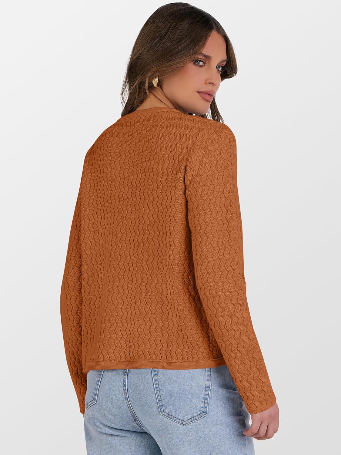 Caracilia Women’s 2025 Fall Cardigan Sweaters Knitted Dressy Casual Jackets Trendy Outfits(Burnt Orange)