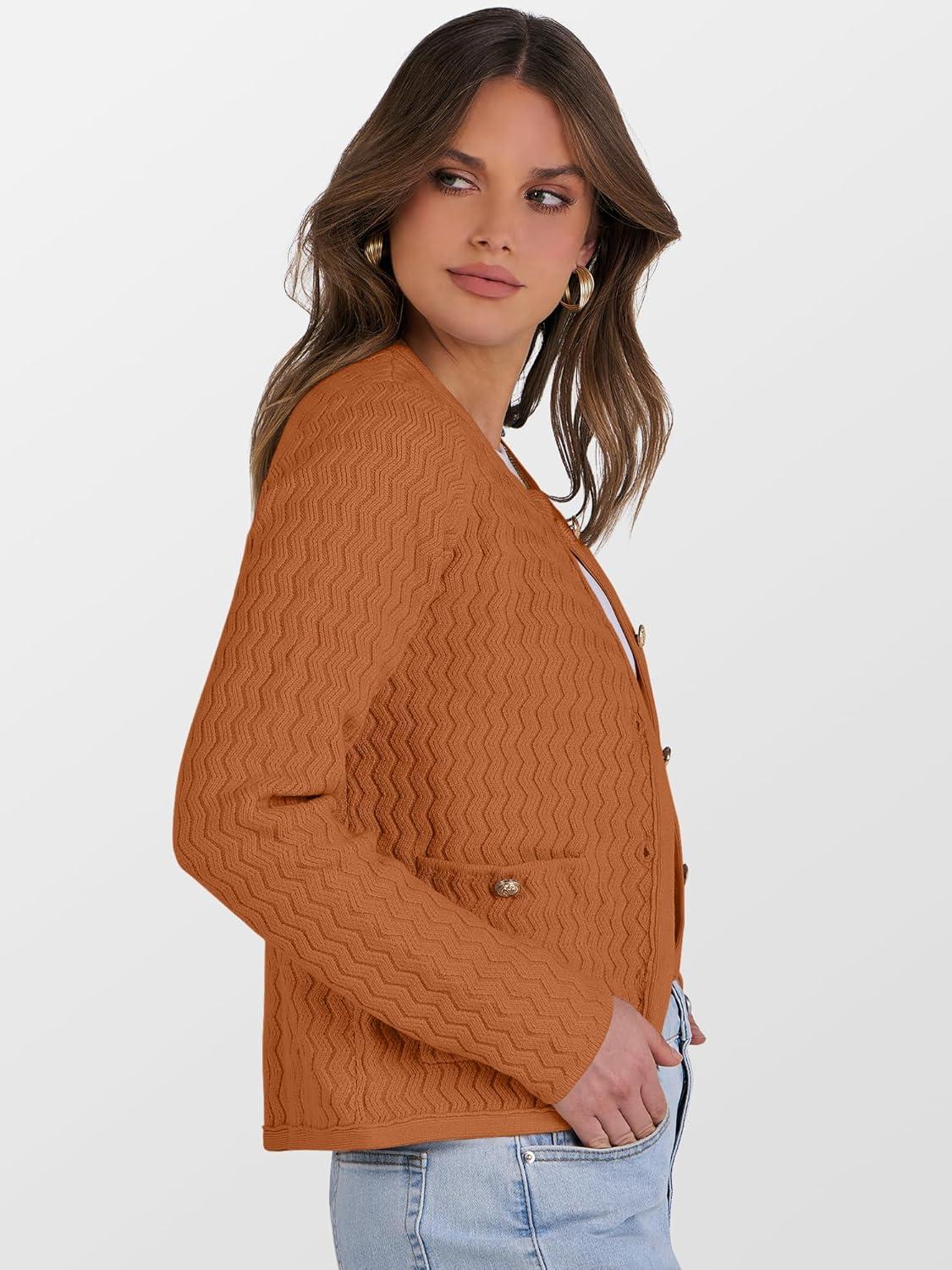 Caracilia Women's 2025 Fall Cardigan Sweaters Knitted Dressy Casual Jackets Trendy Outfits(Burnt Orange)