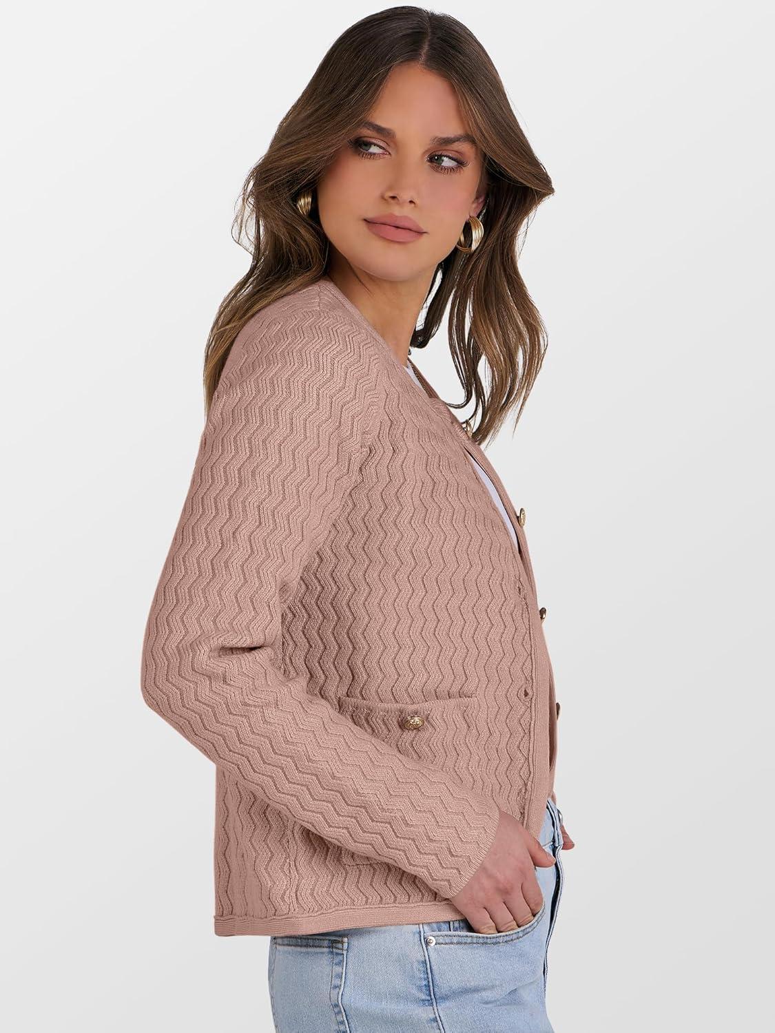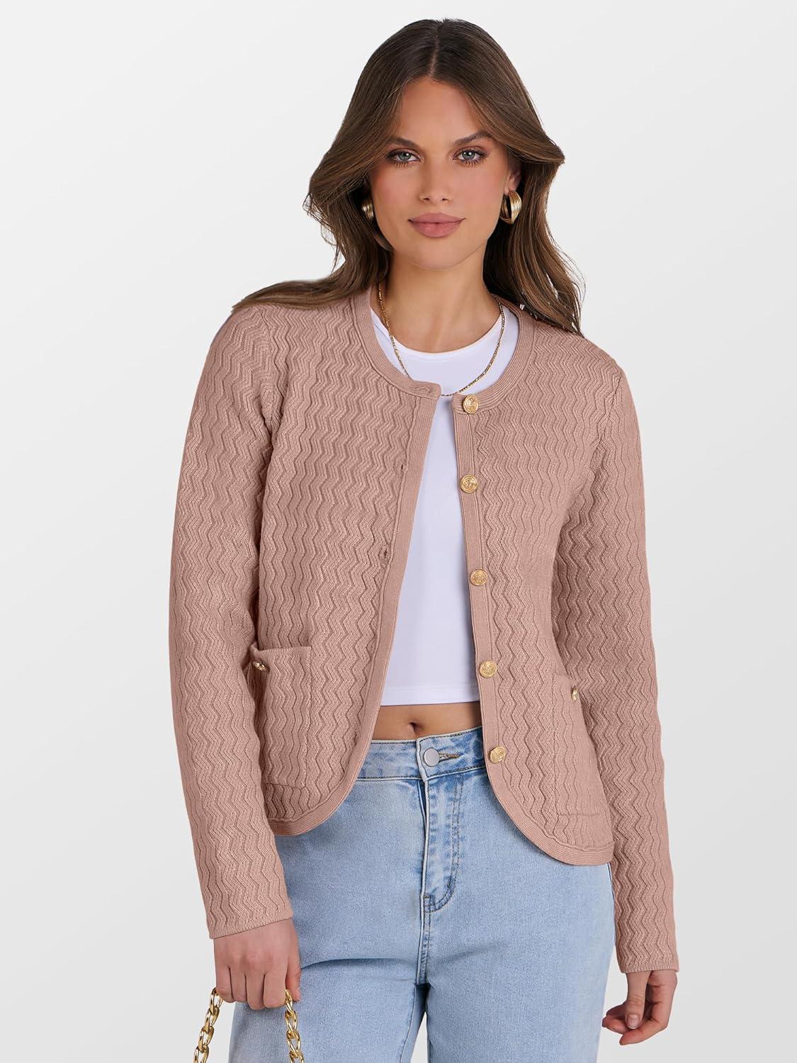 Caracilia Women's 2025 Fall Cardigan Sweaters Knitted Dressy Casual Jackets Trendy Outfits(Camel Peach Brown)