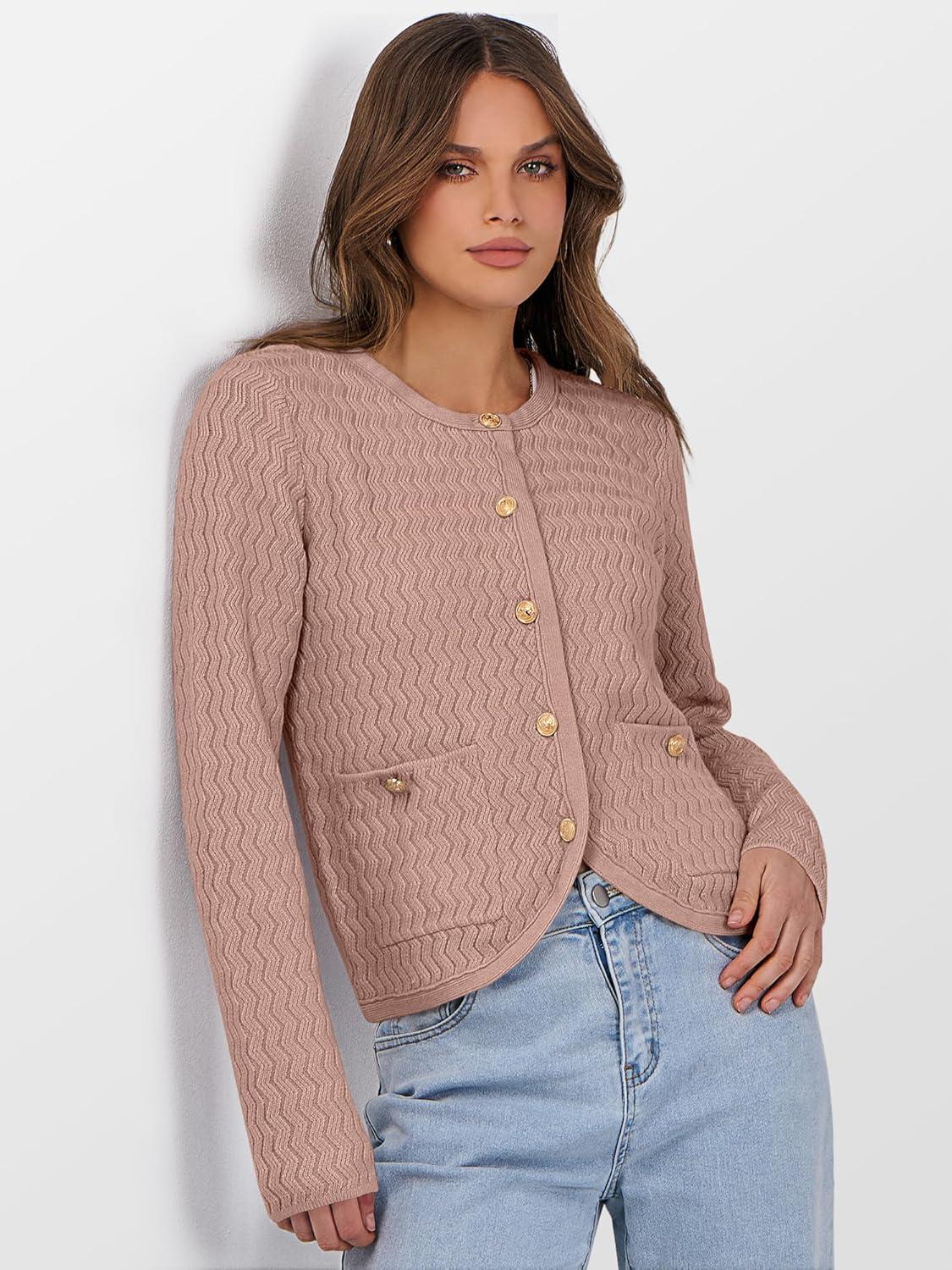 Caracilia Women’s 2025 Fall Cardigan Sweaters Knitted Dressy Casual Jackets Trendy Outfits(Camel Peach Brown)