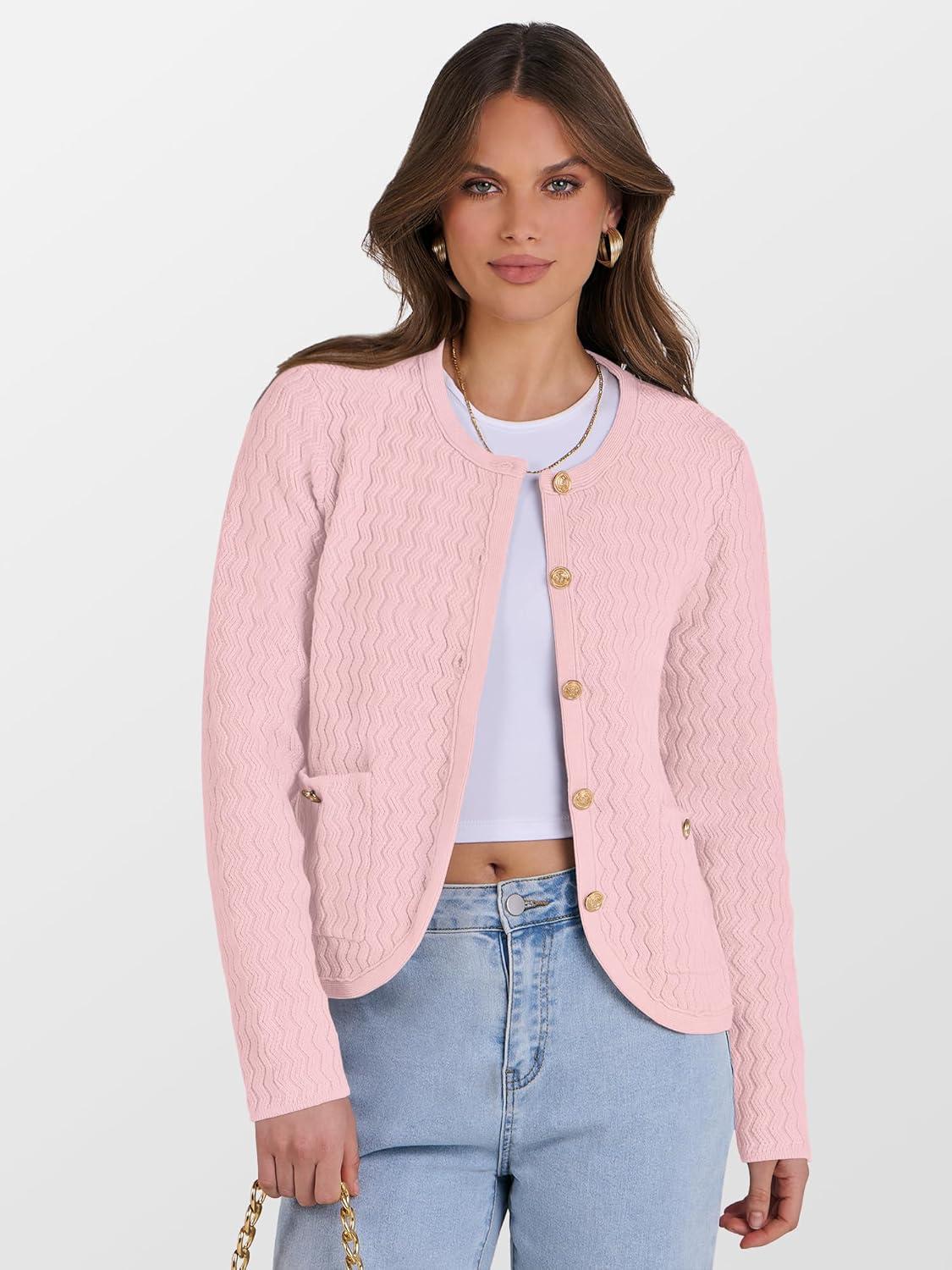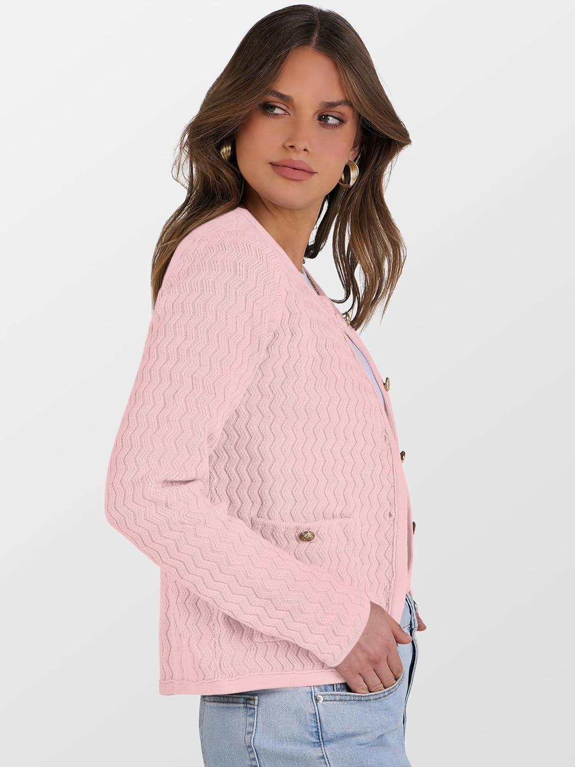 Caracilia Women's 2025 Fall Cardigan Sweaters Knitted Dressy Casual Jackets Trendy Outfits(Pink)